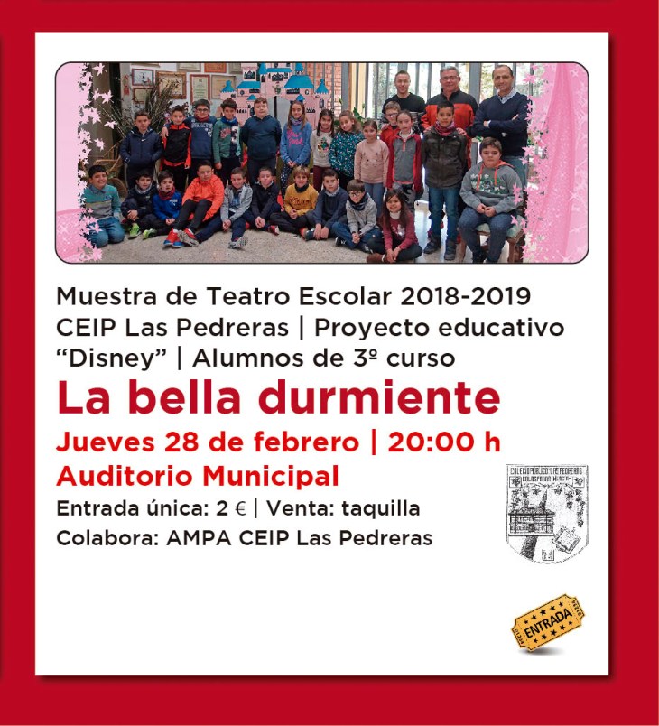 26 febrero, 20197 marzo, 2019 by Oí Producción Artística Teatro Escolar | La Bella Durmiente | 28/02 Infantil, Teatro, Teatro infantil La Bella Durmiente Jueves 28 de febrero | 20:00 h Calasparra | Auditorio Municipal Entrada única: 2 € | Venta: Taquilla Colabora: AMPA CEIP Las Pedreras Relacionado