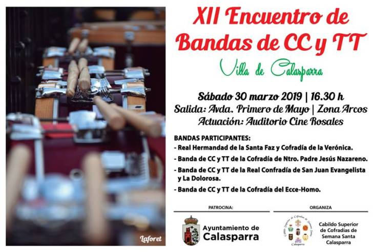 29 marzo, 201912 abril, 2019 by Oí Producción Artística XII Encuentro de bandas de CC y TT | 30/03 Concierto, Sin categoría Cornetas y tambores llenarán las calles de Calasparra el sábado XII Encuentro de bandas de CC y TT | Villa de Calasparra Sábado 30 de marzo | 16:30 h Salida: Avenida Primero de Mayo / Zona Arcos Actuación: Auditorio Cine Rosales Relacionado
