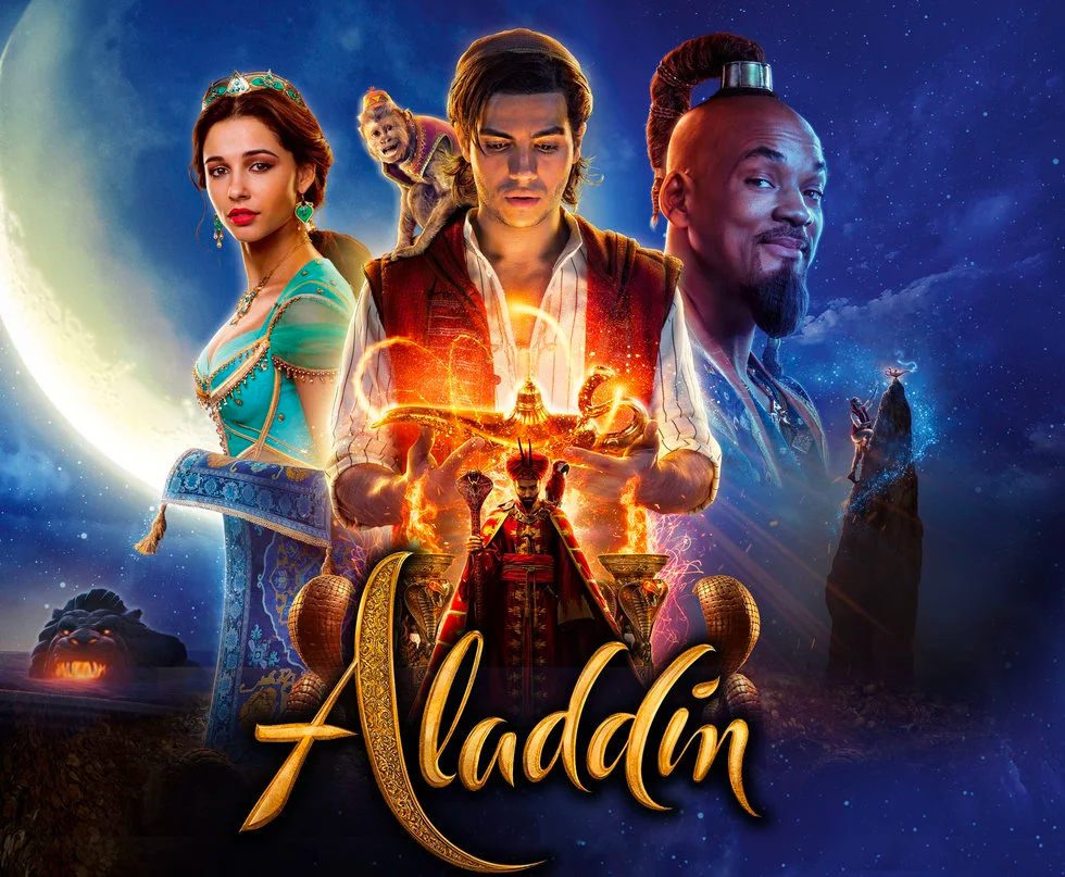 Sinopsis: Aladdin (Mena Massoud) es un adorable pero desafortunado ladronzuelo enamorado de la hija del Sultán, la princesa Jasmine (Naomi Scott). Para intentar conquistarla, acepta el desafío de Jafar (Marwan Kenzari), que consiste en entrar a una cueva en mitad del desierto para dar con una lámpara mágica que le concederá todos sus deseos. Allí es donde Aladdín conocerá al Genio (Will Smith), dando inicio a una aventura como nunca antes había imaginado.